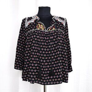 Anthropologie Maeve Embroidered Black Boho Blouse Sz S