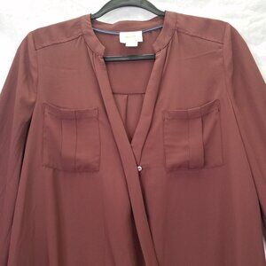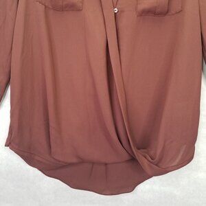 Anthropologie Maeve Eva Wrap Drape Front Blouse Women's Size 2 Crepe Taupe