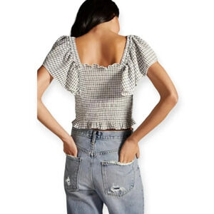 Anthropologie Maeve Gingham Plaid Smocked Ruffle Crop Blouse Flutter Sleeve XS