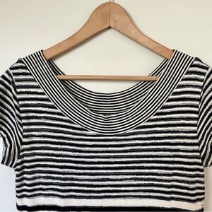 Anthropologie Maeve Haven Striped Coastal Nautical Quiet Luxury Preppy Dress. Cotton blend, made in Turkey. Capped sleeves and boat neck. Cream with a navy nautical stripe. Short length. Size small. Excellent condition.