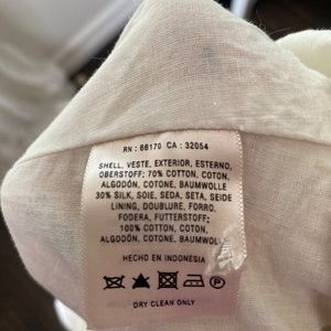 A sweet shirtdress featuring a honeybee pattern on a cream background. The outer layer is made of silk, lined with silk and has functioning buttons. This dress has a flattering drawstring waist. And pockets! Size 2.