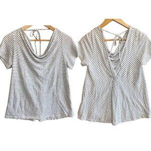 Anthropologie Maeve Horizon T-shirt 100% linen blue white striped S