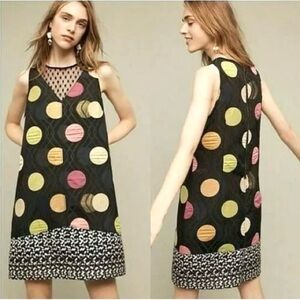 Anthropologie Maeve Jacquard Mesh Polka Dot Shift Dress