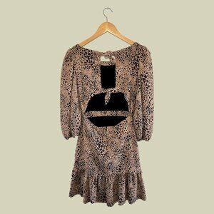 New with tags leopard print Anthropologie dress with open back, mid to short length and high neck.