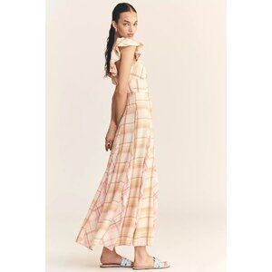 Anthropologie Maeve Linen Blend Flutter-Sleeve A-Line Midi Dress M
