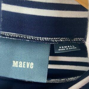 Anthropologie Maeve Navy Blue Striped Turtleneck Dress Stretch Size XS Boho Midi