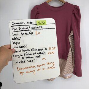 Very good, pre-owned condition with no rips, no holes. Small discoloration near front and back hem area. Likely to be washed away.
