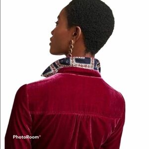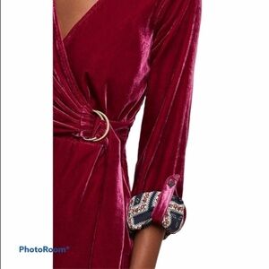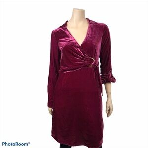 Anthropologie Maeve Raspberry Sofia Velvet Faux-Wrap Shirt Dress Cocktail