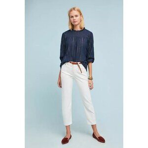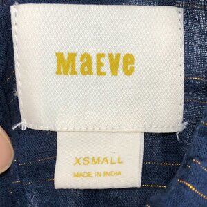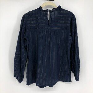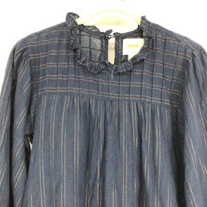 Anthropologie Maeve Reston Blouse Navy Blue w Copper Vertical Stripes size XS