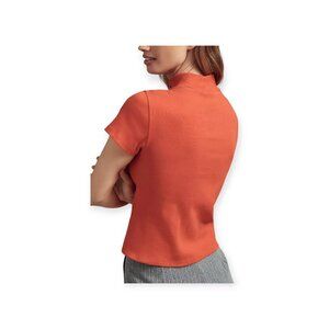 Anthropologie Maeve Ribbed Mock Neck Blair Baby Tee Burnt Orange size S EUC
