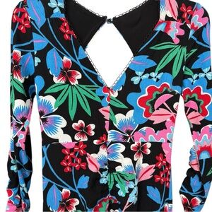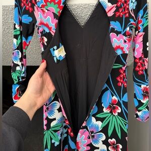 Anthropologie Maeve Ruched Floral Maxi Dress Size 0 XS S Black Long Sleeves Boho