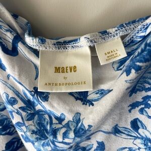 Anthropologie Maeve Shirred Floral Blue Ruched Side Tie Shoulder Tank Small