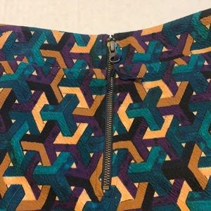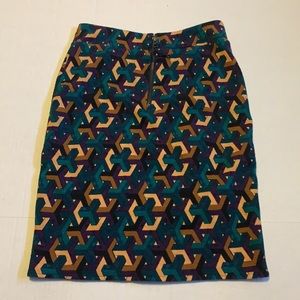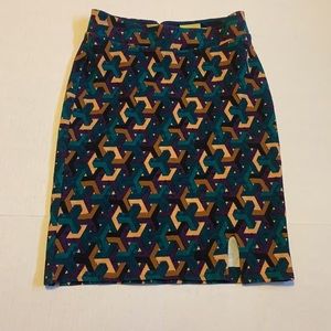 EUC Anthropologie Maeve stretchy purple, teal, peach, and brown pencil skirt with front slit and back zipper in women’s size small.