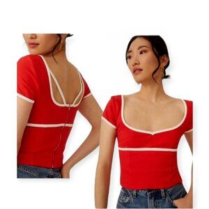 Anthropologie Maeve Sweetheart Ponte Top Red/White Size M NWT