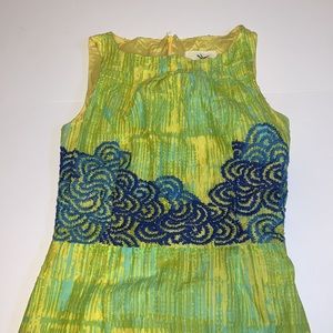 VGUC Anthropologie “Tabitha” green and blue dress in women’s size two (2).