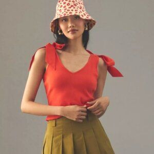 Brighten your look with this Maeve Anthropologie "The Rafaela" tank top in XS! This vibrant orangey/reddish ribbed knit top features a classic V-neck and charming tie-shoulder straps that form cute bows. Made from a comfortable cotton-elastane blend, it has a relaxed feel despite the XS tag; you may find it fits a bit larger than expected.