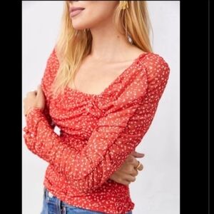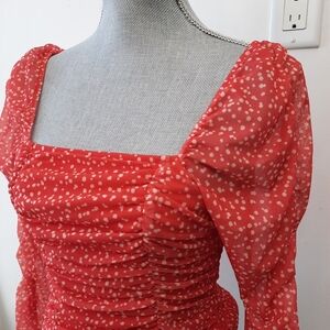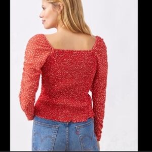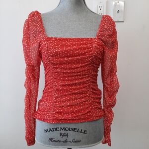 Anthropologie Maeve Tulle Blouse in wine red with white polka dots