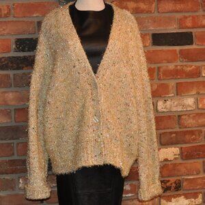 Anthropologie Maeve Twinkle Ivory Gold Tinsel Multicolor Knit Cardigan Sweater