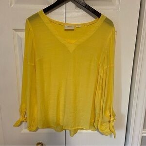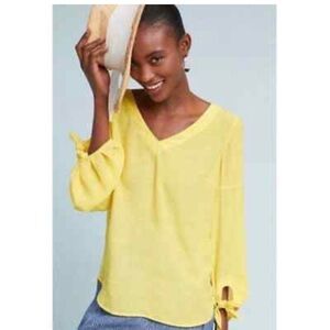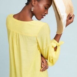 Anthropologie Maeve Verona Yellow Tie Sleeve Rayon Blouse Tunic Top Small