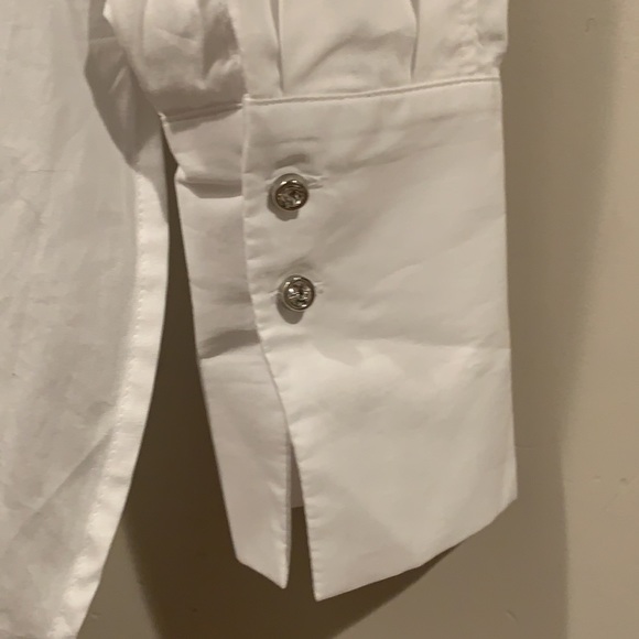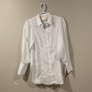 New without tags Maeve by Anthropologie long white button down shirt with poofy sleeves and rhinestone cuff links in women’s size two (2).