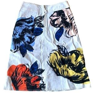Maeve White Denim Floral Belt Skirt from Anthropologie is a great option for casual wear or to dress up an outfit. This skirt features a multicoloured floral pattern with a belt detail in the front.The skirt hits at knee length and is made with a durable cotton for a breathable and airy feel. This skirt is perfect for any occasion and will be sure to add a fun and stylish touch to any outfit.