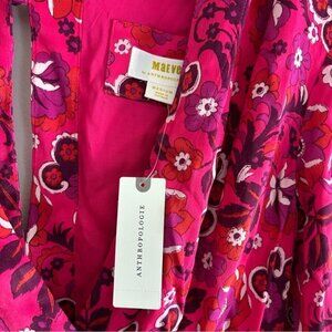 Anthropologie Maeve Wrap Mini Pink Floral V-neck Dress Womens Sz M
