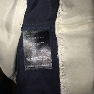 NWT Adorable navy blue and cream colored deep V blouse with button detail and a belt at the waist. Size 0. 100% silk