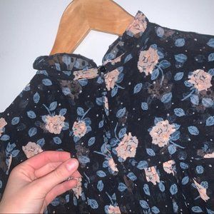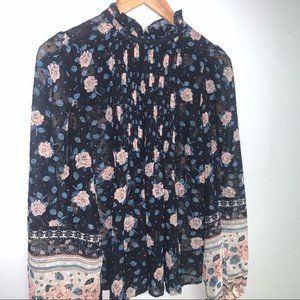 Anthropologie Maison d’Amelie Long Sleeve Blouse Floral Puff Sleeves Size Small