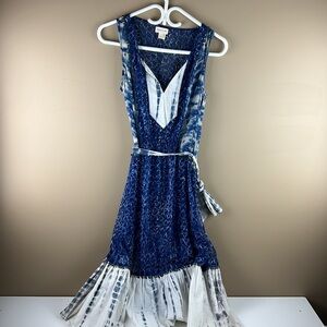 Anthropologie Meadow Rue Blue & White Bohemian Belted Dress