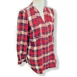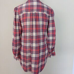 Anthropologie Medford Red and Grey plaid flannel tunic shirt size 6