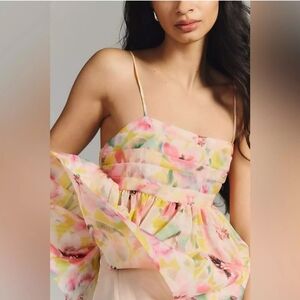 Anthropologie Misa Mariposa Chiffon Floral Babydoll Top