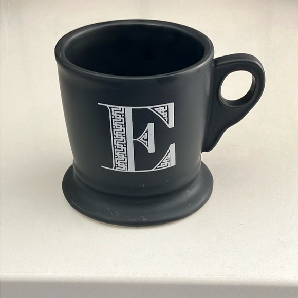 Anthropologie Monogrammed letter E Black Matte Mug / coffee beverage cup