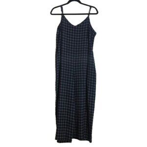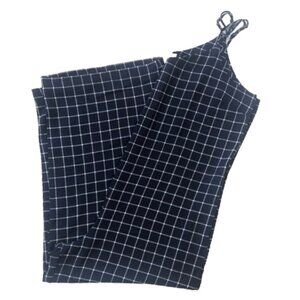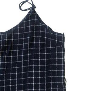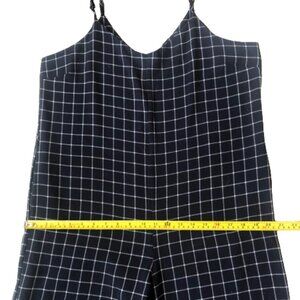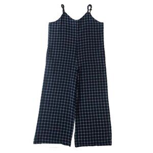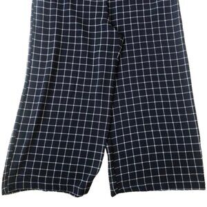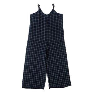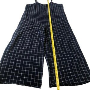 Anthropologie Monteau window pane plaid wide leg navy and white jumpsuit