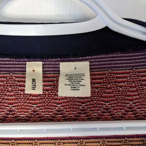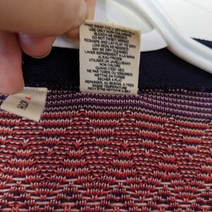 Anthropologie Fiamma Colorful Knit Sweater Cardigan by Moth Meandering stitches crest and fall time and again within their navy borders, creating a mesmerizing swath of sweaterknit. Made of cotton rayon blend Covered buttons