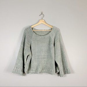 Anthropologie Moth Green Knit Cropped Sweater Bell Sleeve Soft Relaxed Medium M