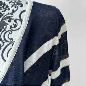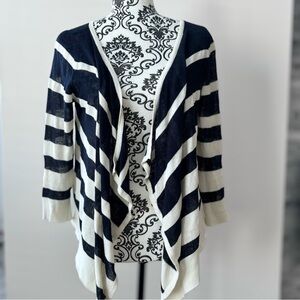 Anthropologie Moth Linen Cotton Fine Knit Open Front Cardigan Sweater Striped S