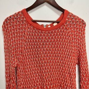 Anthropologie Moth Orange 100% Honeycomb Crew Neck Sweater Size Medium