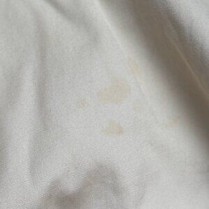 Slight stain on white part of dress (see photos) -- would probably come out with a little TLC but the dress is too small for me