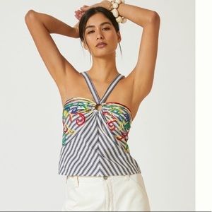 Anthropologie NWT Avril Embroidered Striped Knit Halter Size L. $110US.