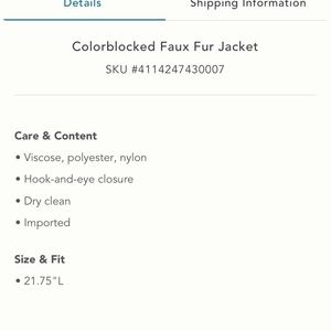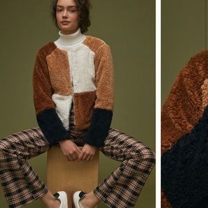 Anthropologie NWT Colorblocked Faux Fur Jacket Size M. Will fit size S as well. Absolutely adorable, beautiful, comfortable and fun jacket.