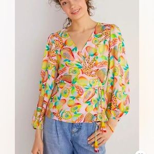 Anthropologie NWT Farm Rio Rainforest Tropical Fruits Wrap Blouse Size S.