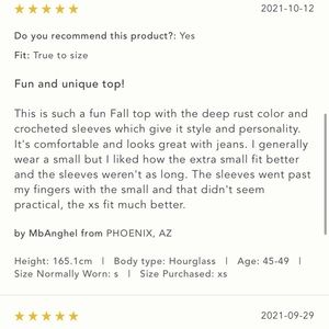 Anthropologie NWT Pilcro Crochet-Cuffed Top Size S. Color: Cedar.