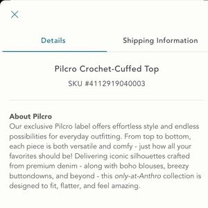 Anthropologie NWT Pilcro Crochet-Cuffed Top Size S.