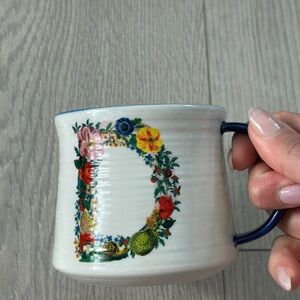 Anthropologie Nathalie Lete Monogram Initial D Cup Floral Cat Blue Mug