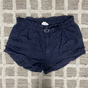 Anthropologie Navy Blue Belted Linen Shorts Size Large