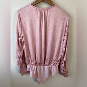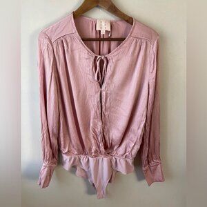 Anthropologie Nurode Tie-Neck long sleeve Bodysuit - Fall Pink size medium