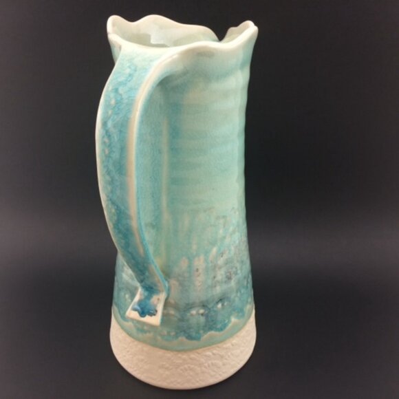 Beautiful pitcher made by hand in Portugal for Anthropologie. Part of their 'Old Havana' product line of reactive and crackle-glazed stoneware.
