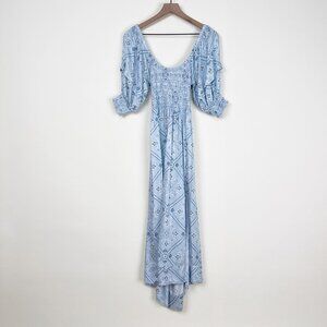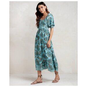 Anthropologie Omika Handmade Midi Blair Dress Puff Poof Sleeve Euro Girl Greece