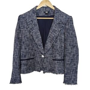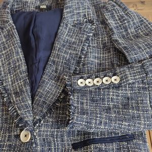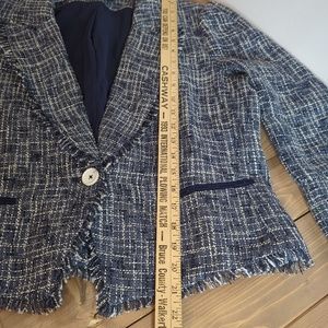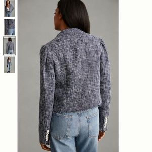 Anthropologie Paige Women’s Blue Tweed Linen Blend Puff Sleeve Blazer
