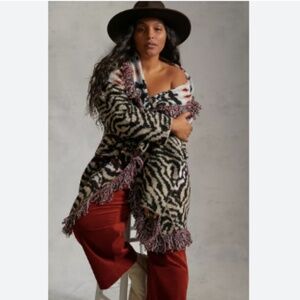 Anthropologie Paloma Fringed Cardigan Animal Print Fringe XL